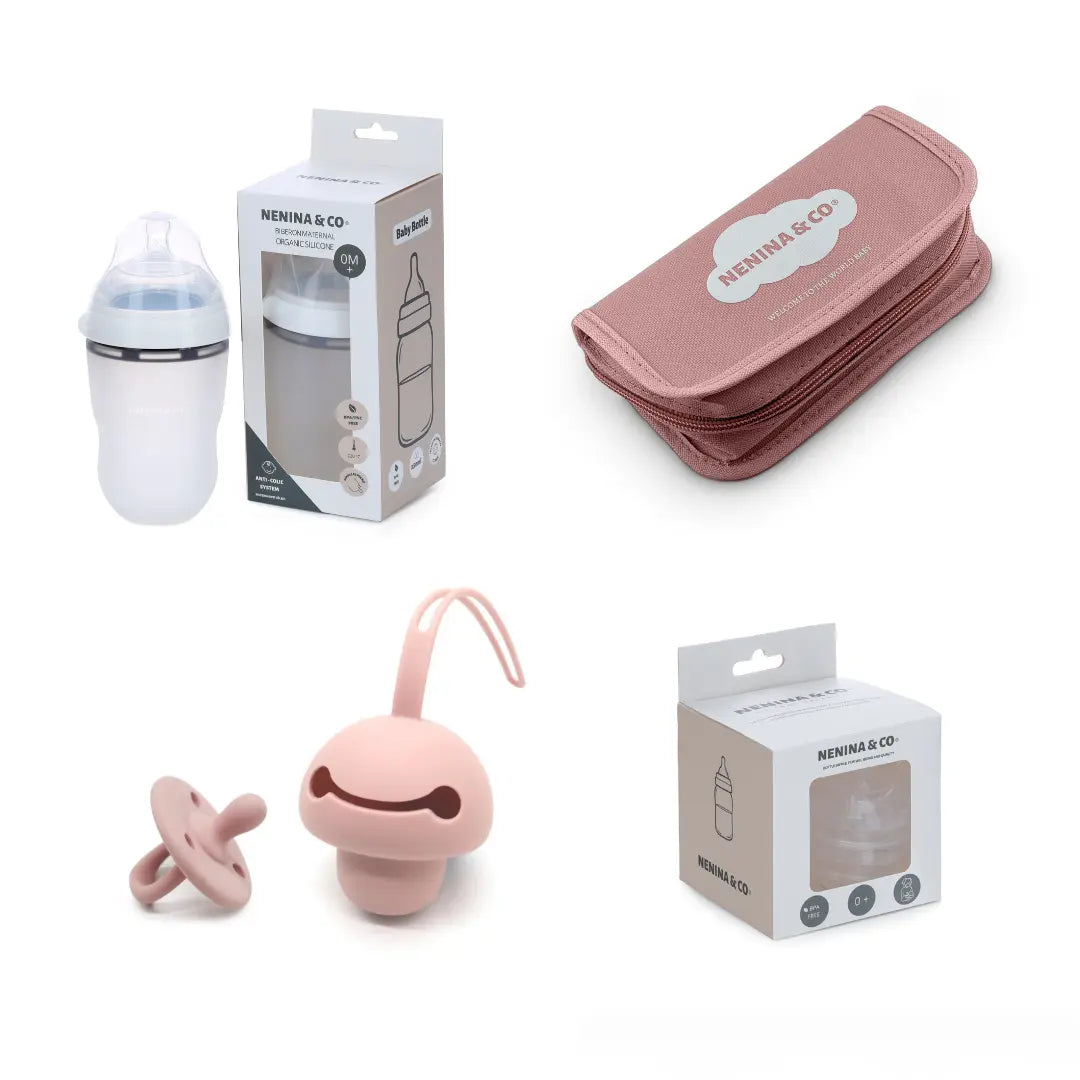 Kit Regalo ideal Set de higiene + Guardachupete + Chupete + Biberón + Repuesto de 4 tetinas Nenina & Co
