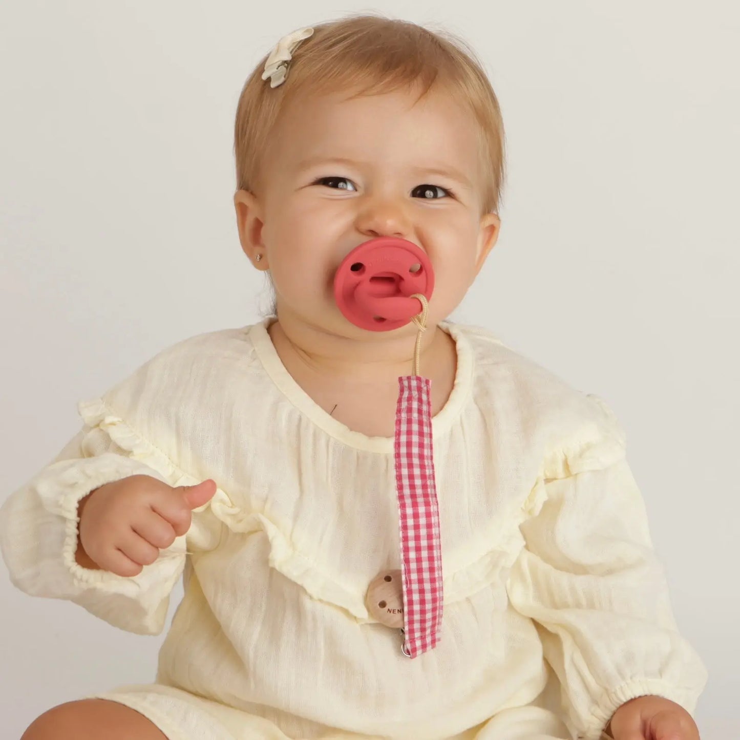 Mantiene tu chupete sujeto y al alcance de tu bebé .